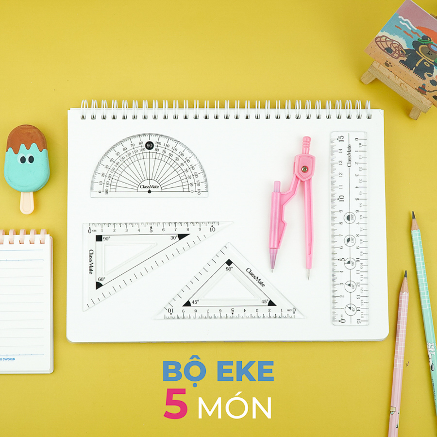 - Tên sản phẩm:Bộ Thước 5 Món CLASSMATE Có Eke, Đo Góc, Compa CL-RS104