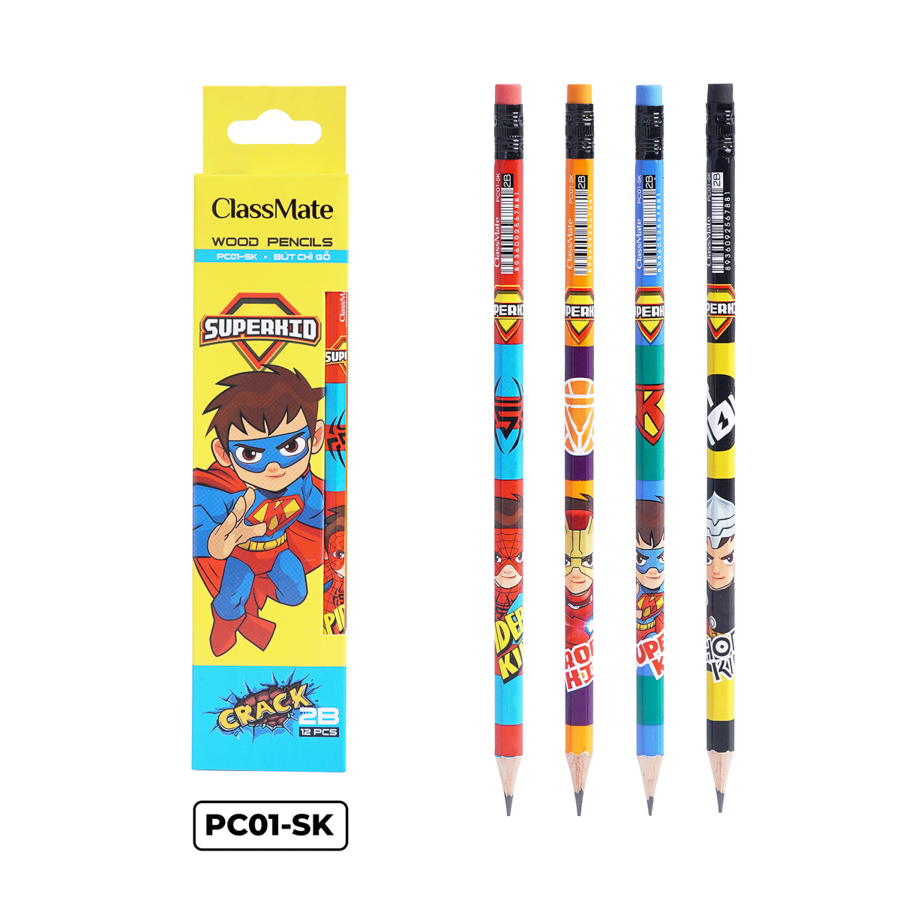 - Bút chì gỗ Classmate PC01-SK có tẩy nhỏ kèm theo ở đuôi bút
