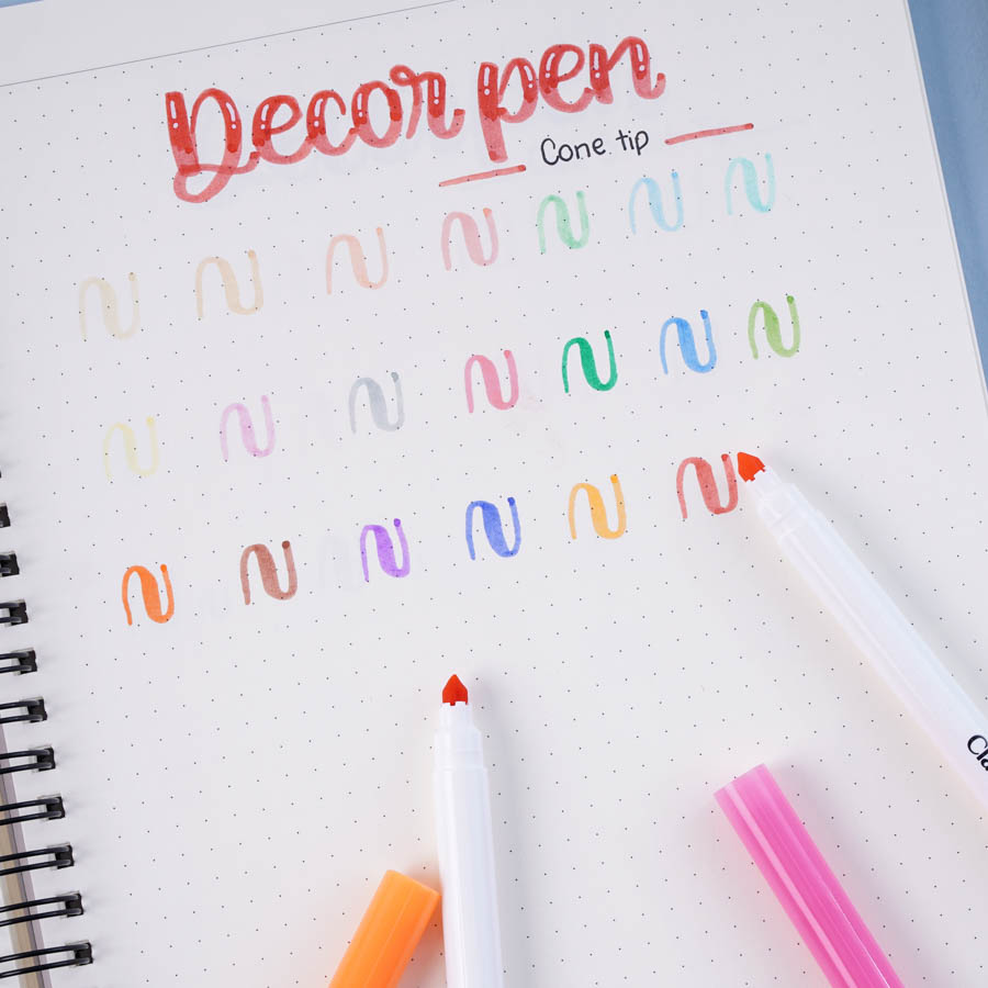 + Đầu ngòi Cone Tip (Chóp Nón) tăng diện tích tiếp xúc của bút và bề mặt sổ, vở: dễ dàng viết calligraphy đối với các bạn mới tập viết; có thể dùng để tô màu