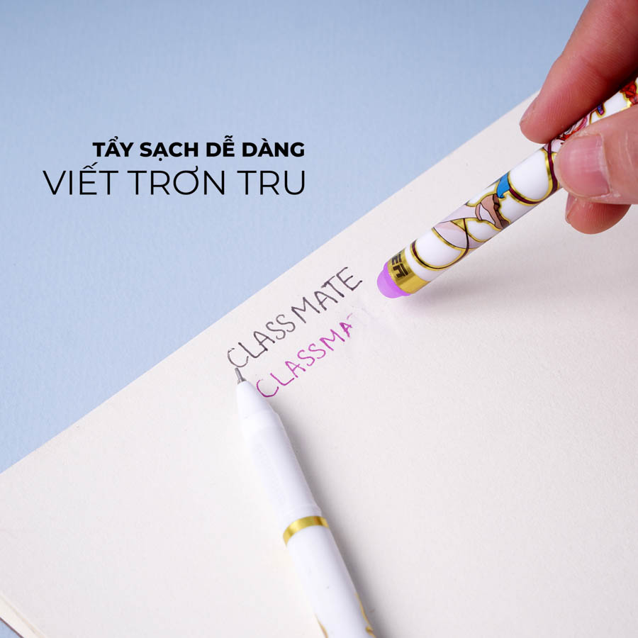 - Sản phẩm có đầu tẩy mực, khi viết sai hoặc không cẩn thận vạch vào sách vở, người dùng có thể dùng đầu tẩy để xóa những phần đó đi một cách dễ dàng mà không để lại dấu vết gì.