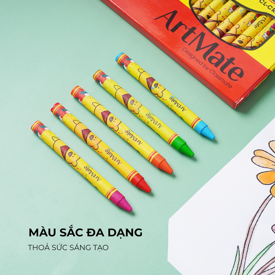- Bút sáp dầu CLASSMATE được làm từ nguyên liệu cao cấp, cho màu sắc chuẩn, tự nhiên, tươi sáng như thật, có độ bám giấy và độ phủ màu tốt. Khi tô vẽ lên mặt giấy, màu đều, mịn và bóng.