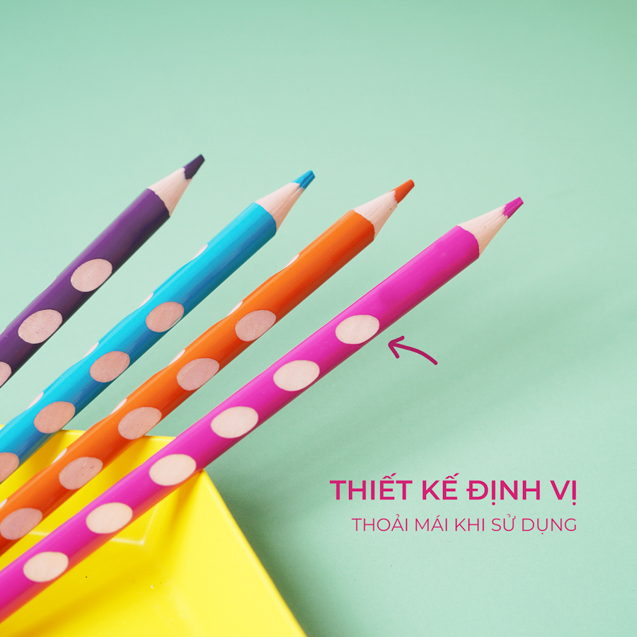 - Trên thân bút có các lỗ khoét định vị, để các bé có thể định vị chính xác vị trí đặt ngón tay khi cầm bút viết
