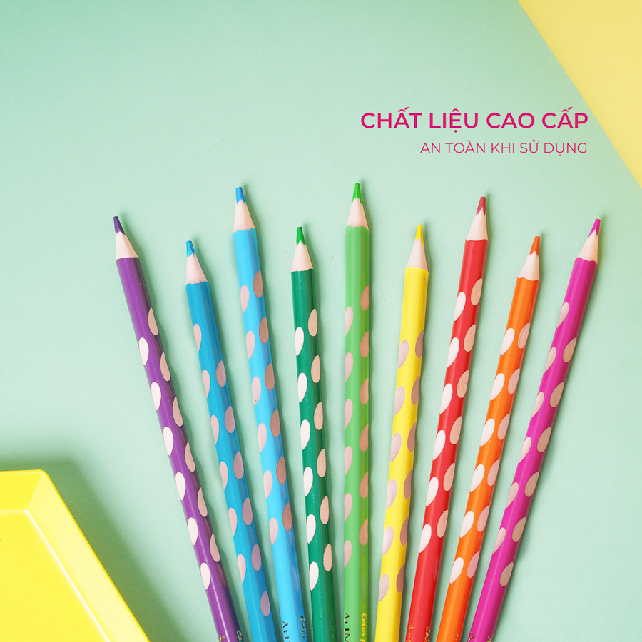 - Ruột chì cứng, dễ bám giấy, màu mịn đẹp, không bị gãy vụn, ít hao, ít tạo màu thừa, hạn chế làm bẩn tay và quần áo.