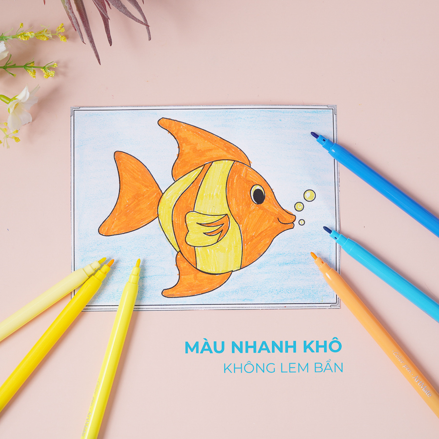 - Bút dạ màu gồm nhiều màu, thiết kế vừa tay cầm với trẻ nhỏ, cho các em thỏa sức sáng tạo nên các tác phẩm ấn tượng.