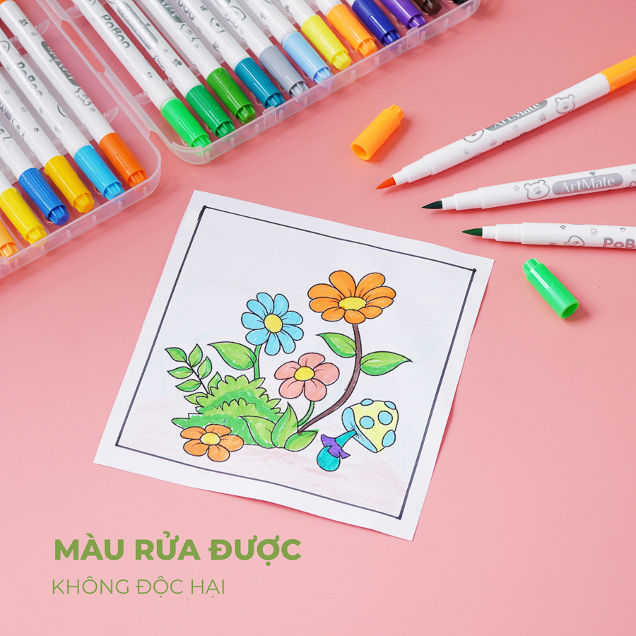 - Bút dạ màu gồm nhiều màu, thiết kế vừa tay cầm với trẻ nhỏ, cho các em thỏa sức sáng tạo nên các tác phẩm ấn tượng.