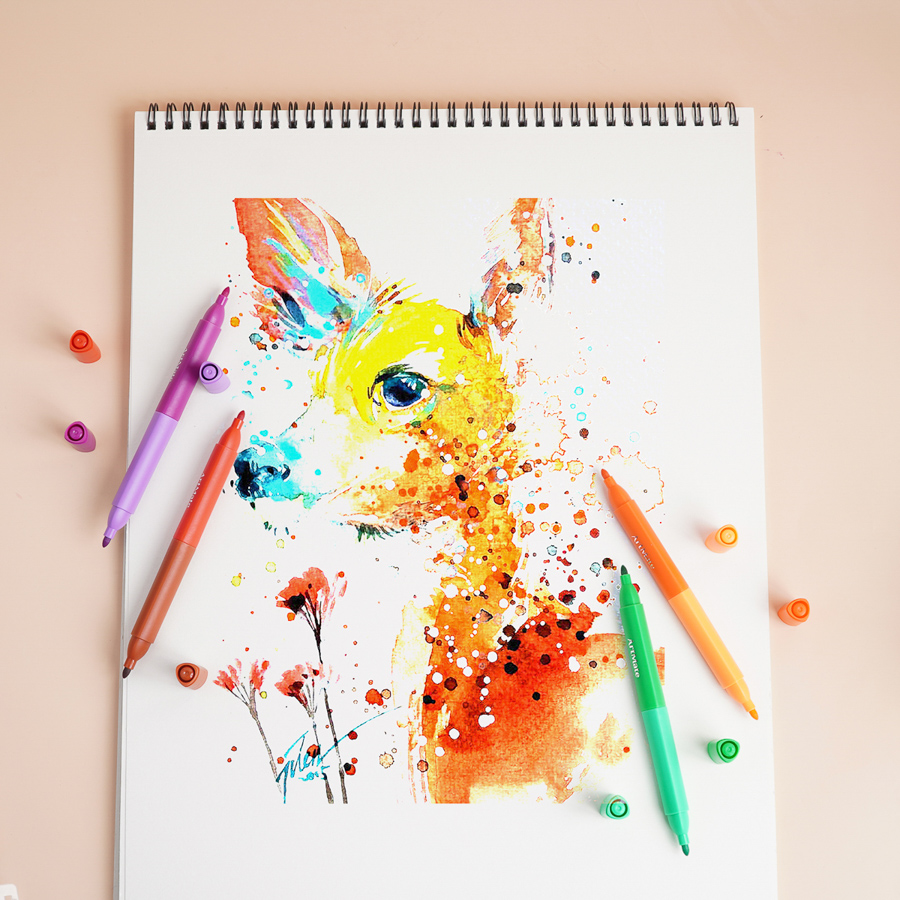 - Bút dạ màu gồm nhiều màu, thiết kế vừa tay cầm với trẻ nhỏ, cho các em thỏa sức sáng tạo nên các tác phẩm ấn tượng.
