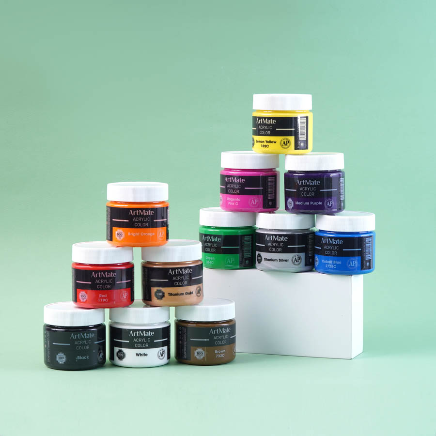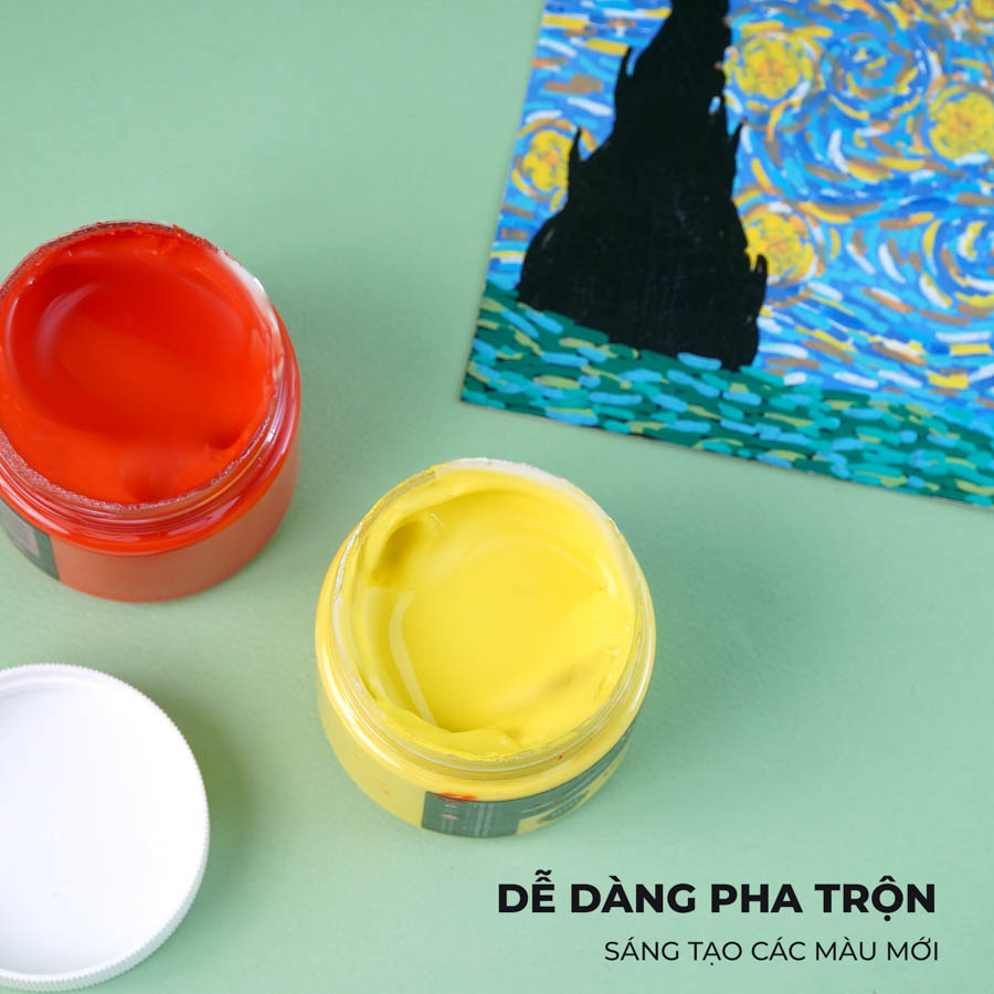 - Màu Acrylic tô vẽ được trên mọi chất liệu: Vải, Giấy, Thủy Tinh, Vỏ Sò, Đá Cuội, Nhựa... có thể tô tượng