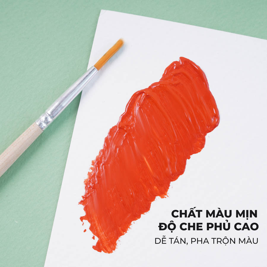 - Màu mịn, dễ tán, nhanh khô do đó sau khi lấy màu ra khỏi tuýp cần vặn nắp lại để tránh bị khô màu bên trong