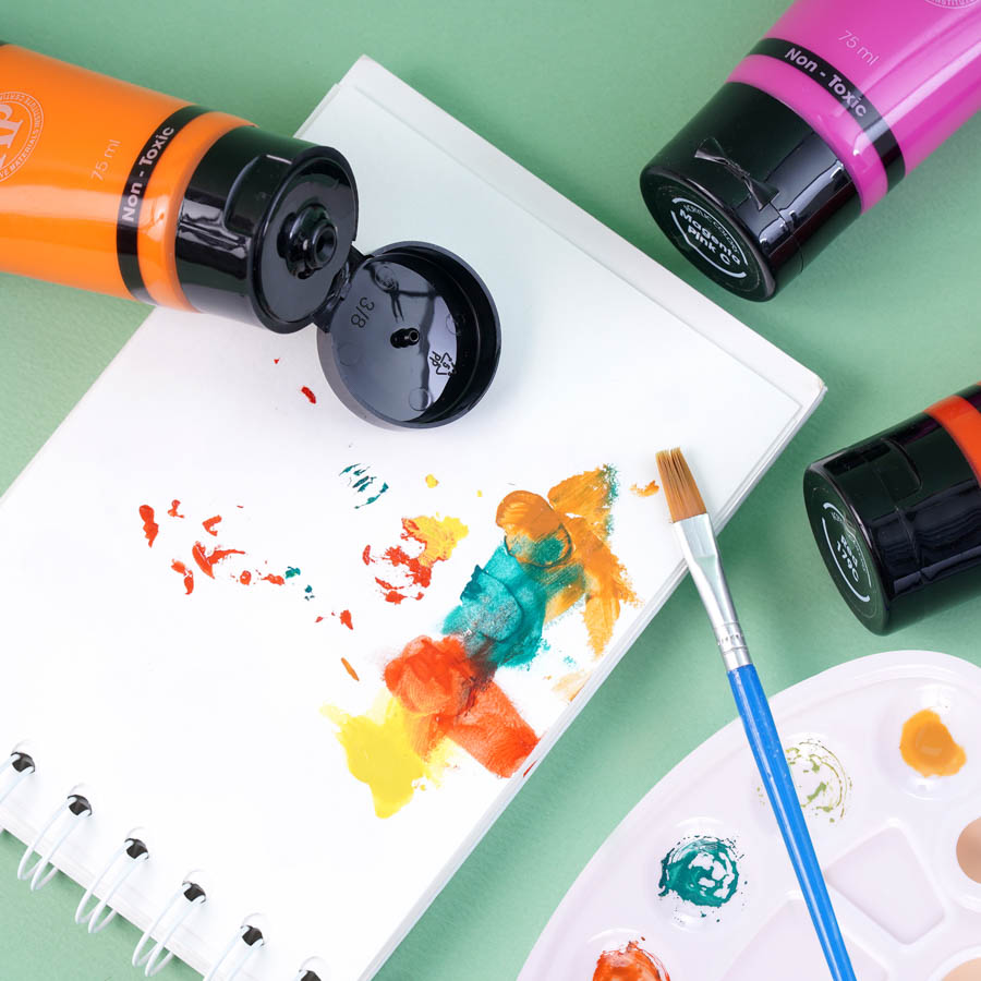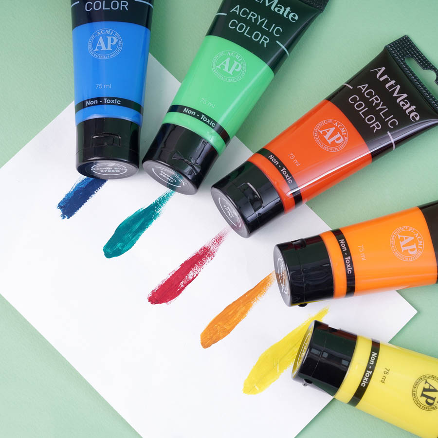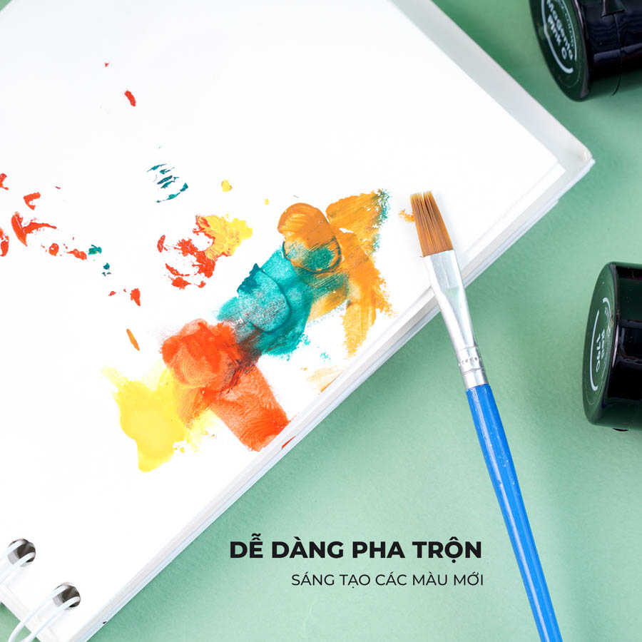 - Màu Acrylic tô vẽ được trên mọi chất liệu: Vải, Giấy, Thủy Tinh, Vỏ Sò, Đá Cuội, Nhựa... có thể tô tượng