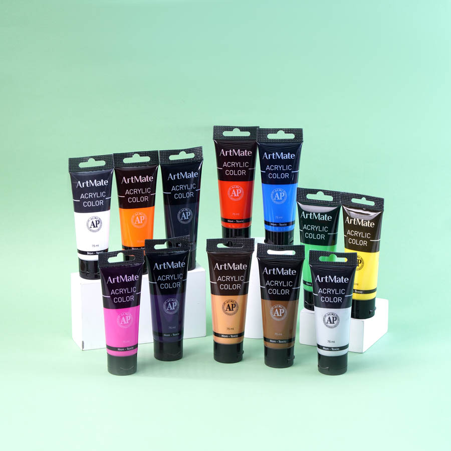 - Màu Acrylic tô vẽ được trên mọi chất liệu: Vải, Giấy, Thủy Tinh, Vỏ Sò, Đá Cuội, Nhựa... có thể tô tượng