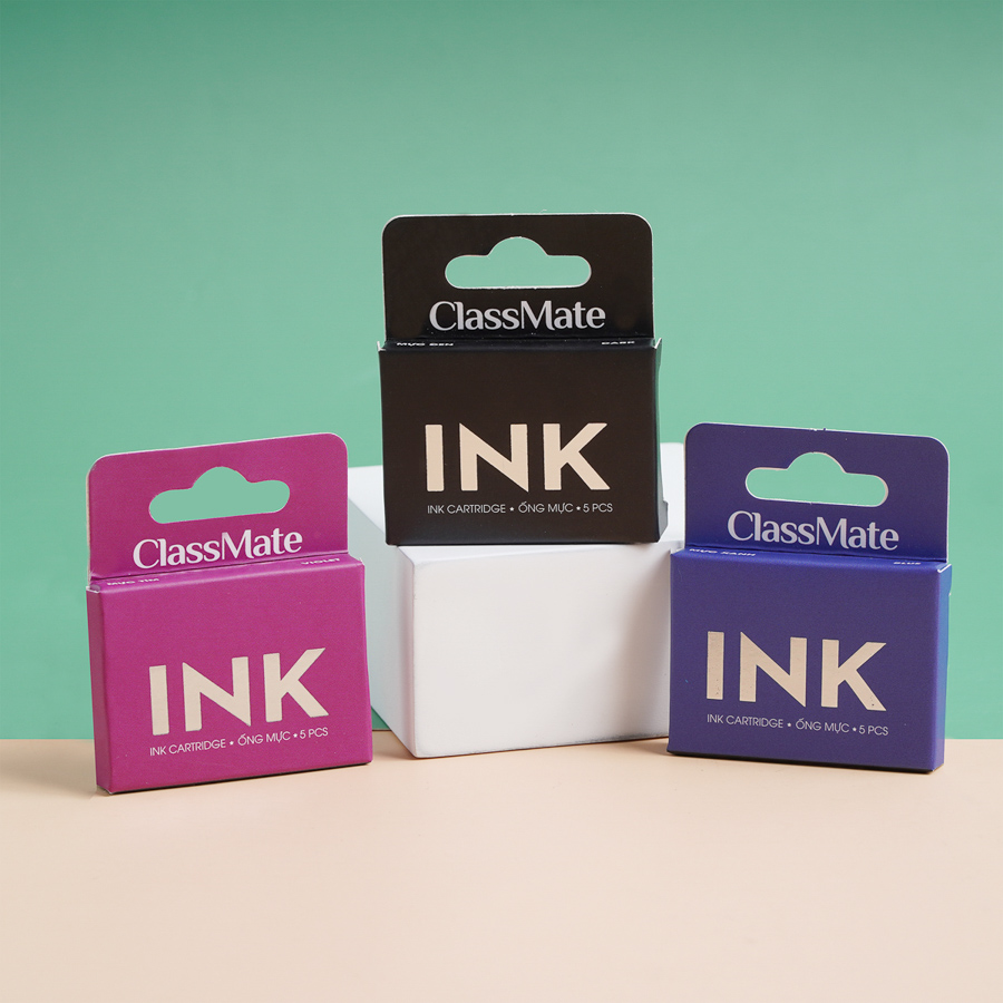 - Ống mực có 3 màu: tím / xanh / đen.