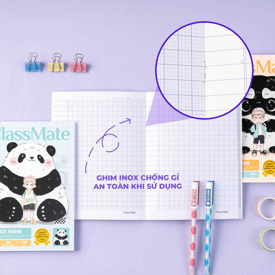 - Hình ảnh in sắc nét, đường kẻ ô ly rõ ràng: Sử dụng công nghệ in tiên tiến, hiện đại với hình ảnh họa tiết Marvel độc đáo, gần gũi với các em nhỏ. Vở học sinh Classmate được thiết kế với gam màu pastel dịu mát, giúp kích thích thị giác và trí não của trẻ khi học tập.