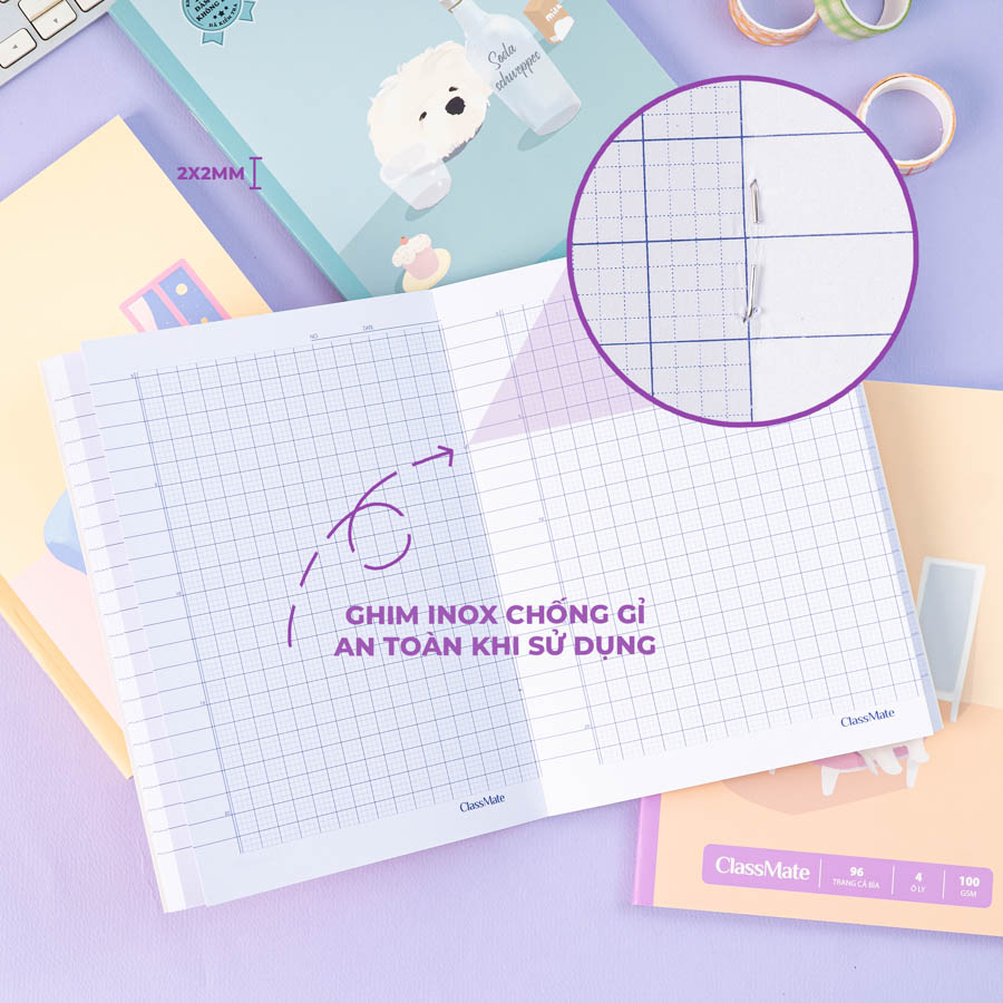 - Dòng kẻ: 4 Ô ly (2x2 mm)