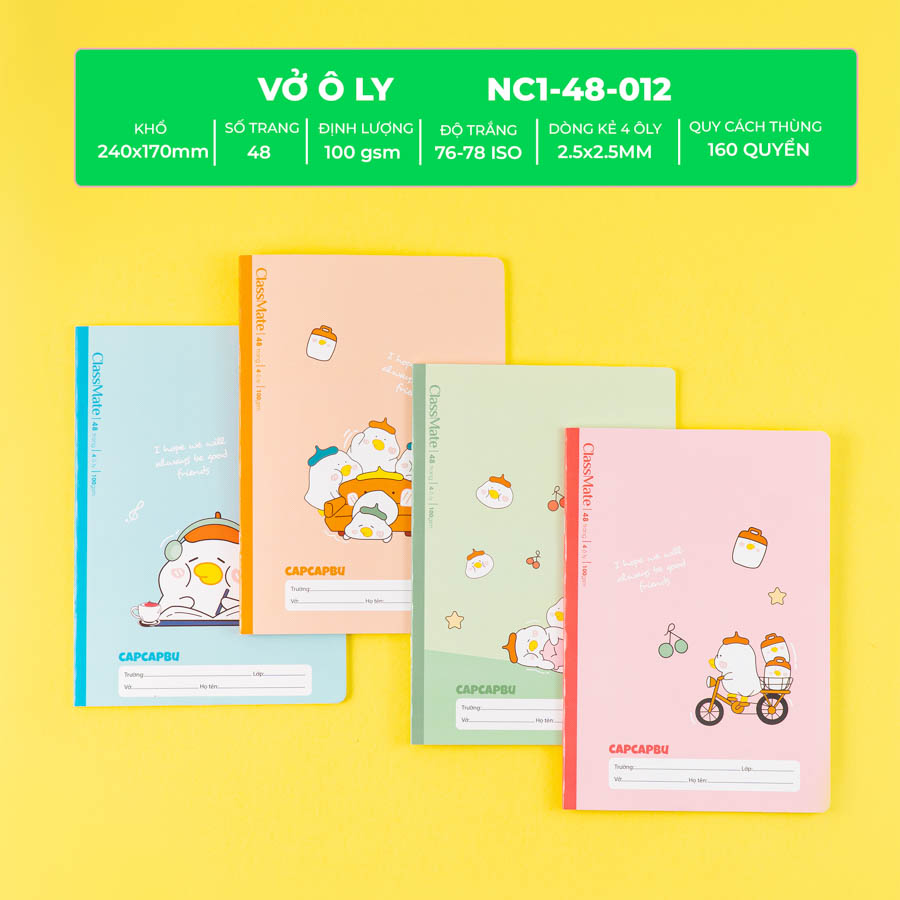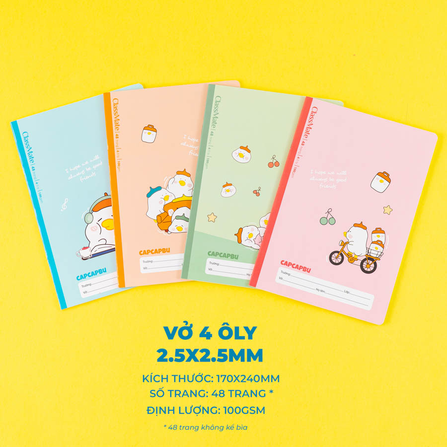 - Dòng kẻ: 4 Ô ly (2.5x2.5mm)