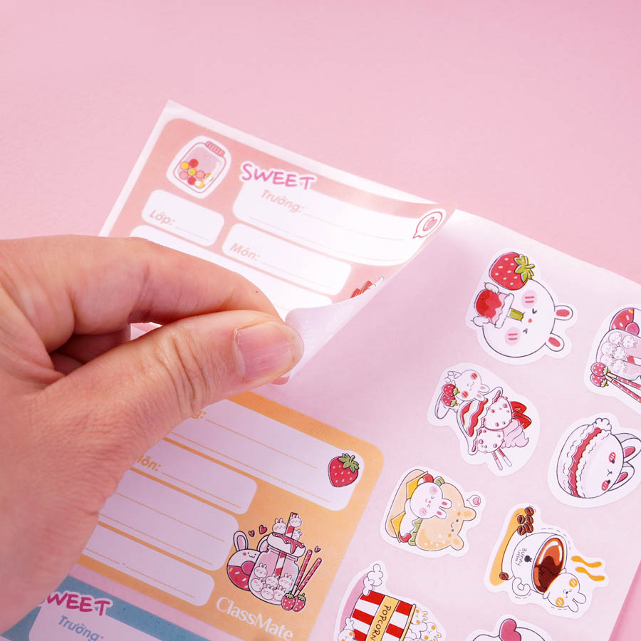 - Nhãn vở dạng đề can tiện dụng, bạn chỉ cần bóc phần giấy đằng sau và dán vào sách vở là có thể sử dụng được.