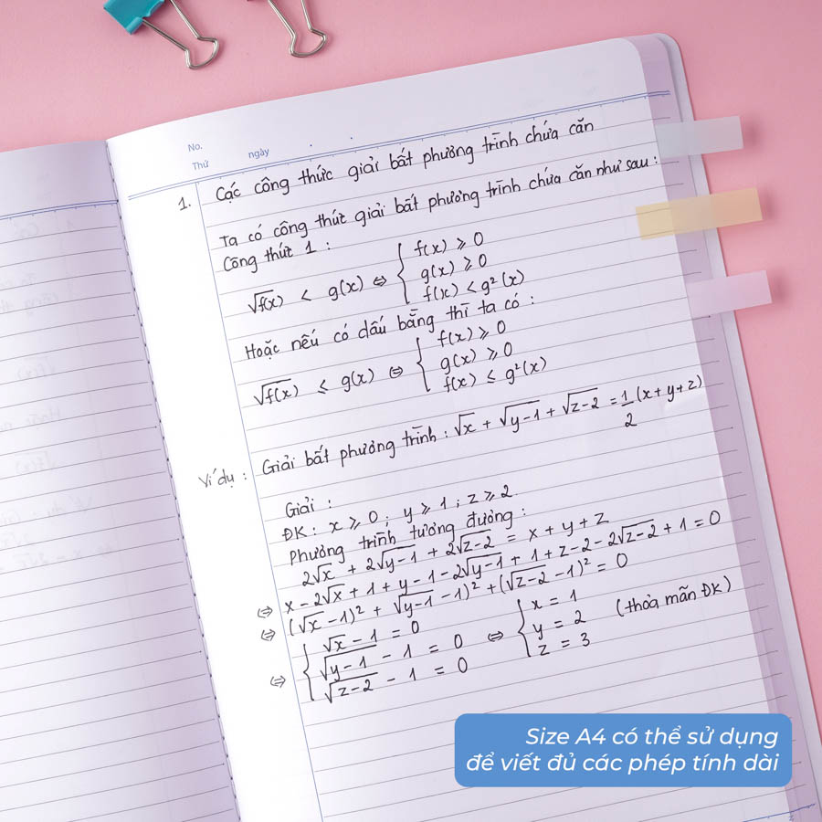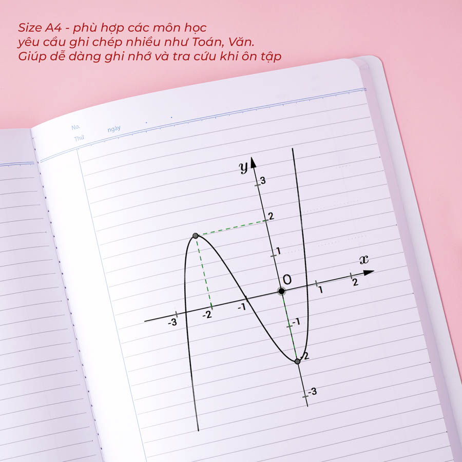 - Sổ có kích thước A4 to, số trang 200, sổ dày phù hợp để các thầy cô làm giáo án, các bạn học sinh dùng làm vở ghi chép các môn học quan trọng, mang đi học phụ đạo, ghi chép các kiến thức cốt lõi