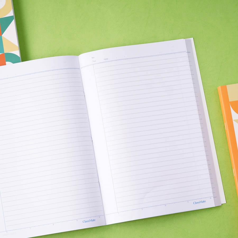 - Dòng kẻ 2 màu giúp chống loá mắt, size A4 kiến thức dàn trải trên 1 bề mặt lớn hơn (hạn chế số lần lật qua lật lại)