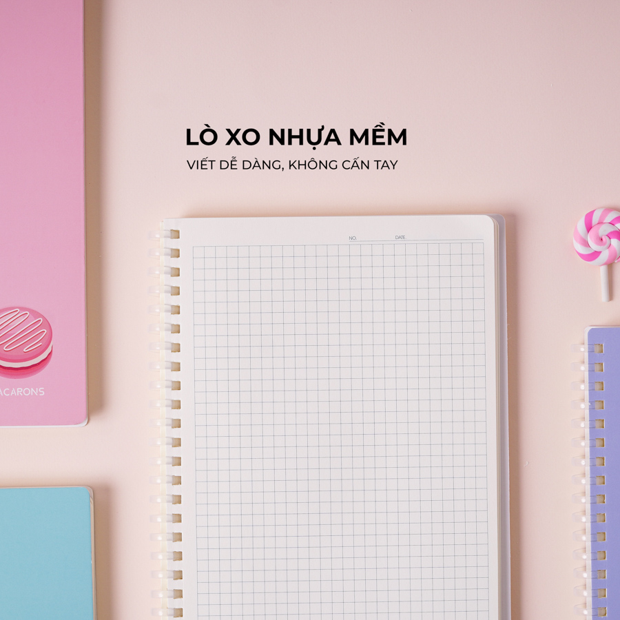 - Sổ lò xo nhựa mềm, mở 360 độ dễ dàng. Lò xo nhựa mềm giúp các bạn không lo về vấn đề cấn tay khi viết, khắc phục được nhược điểm của các loại sổ lò xo kim loại.