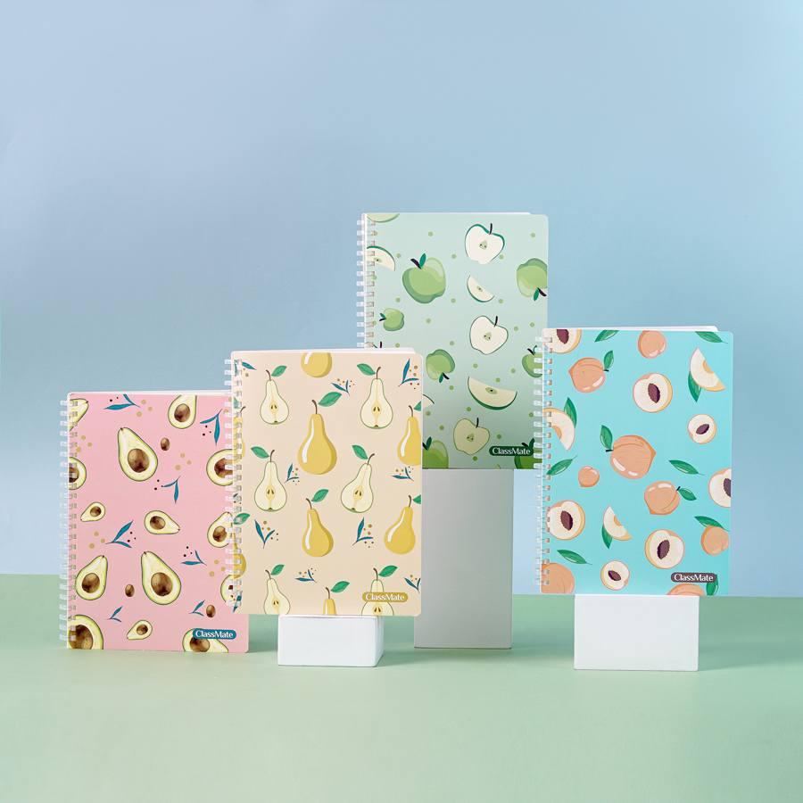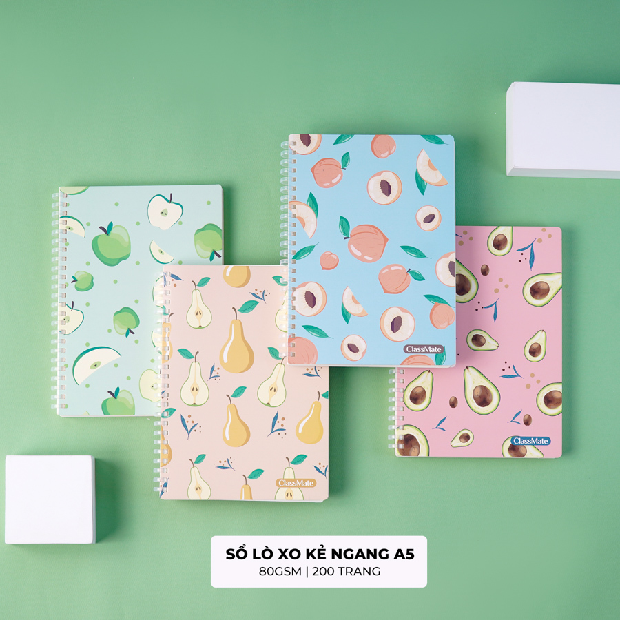 - Sổ lò xo nhựa Fruit xinh xắn, 4 mẫu bìa là 4 loại quả khác nhau