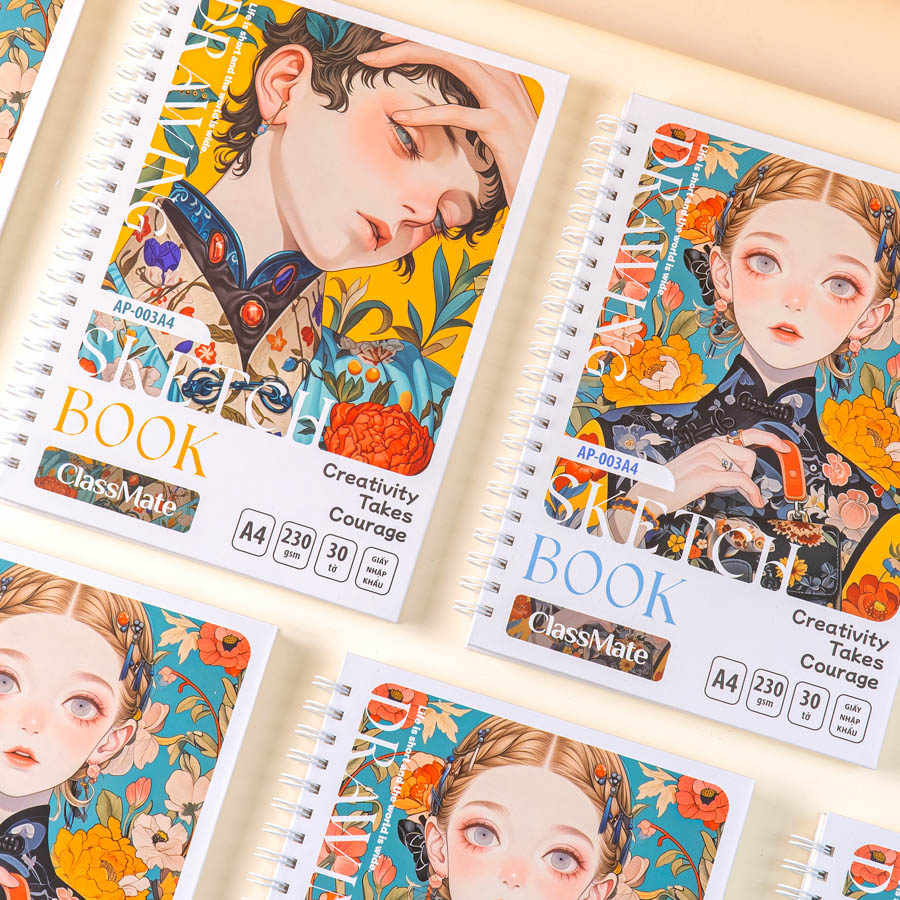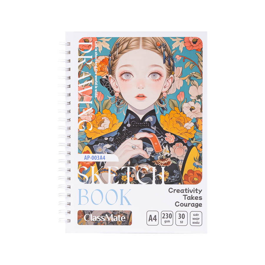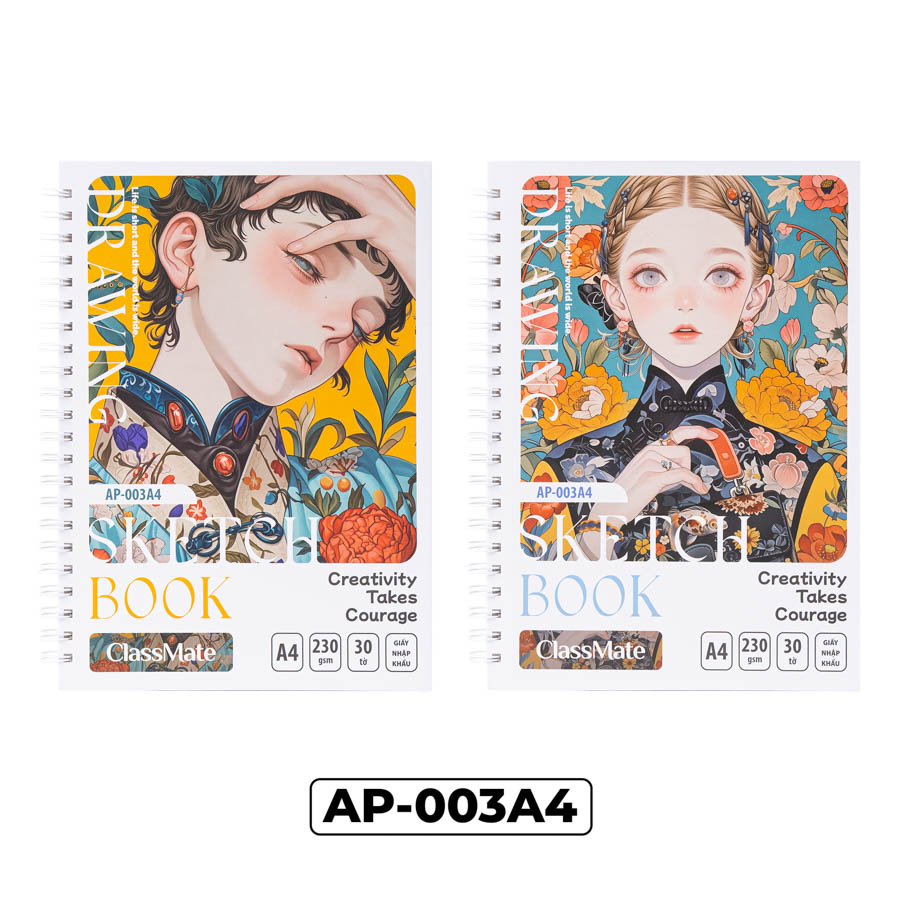 Sổ vẽ AP-003A4, Khổ A4, lò xo đôi, ĐL 230gsm, 30 tờ