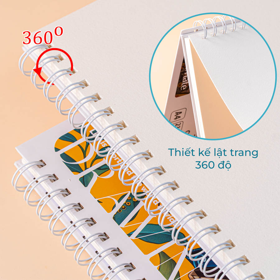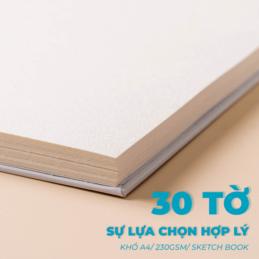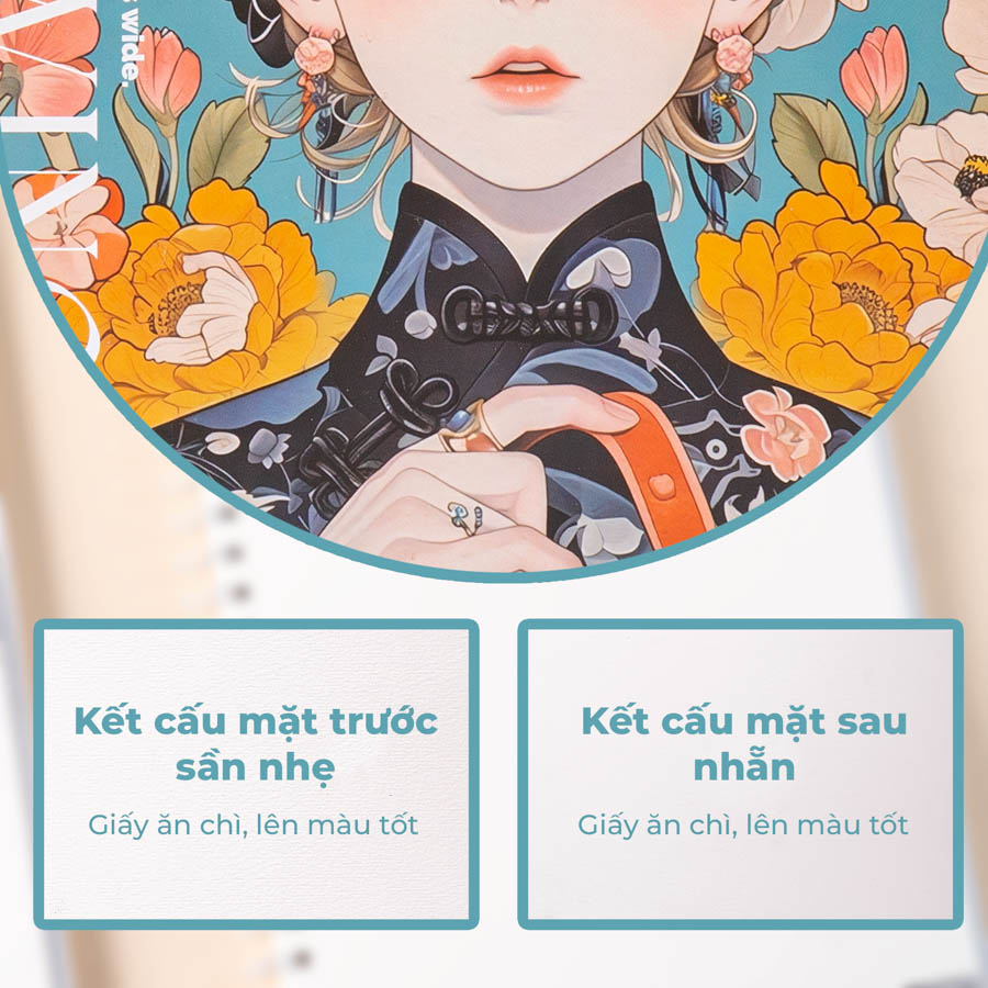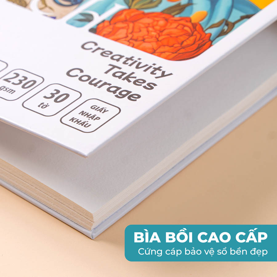 - Phần bìa sổ: Cả Bìa trước và Bìa sau đều là bìa bồi cứng, tạo điểm tựa khi vẽ.