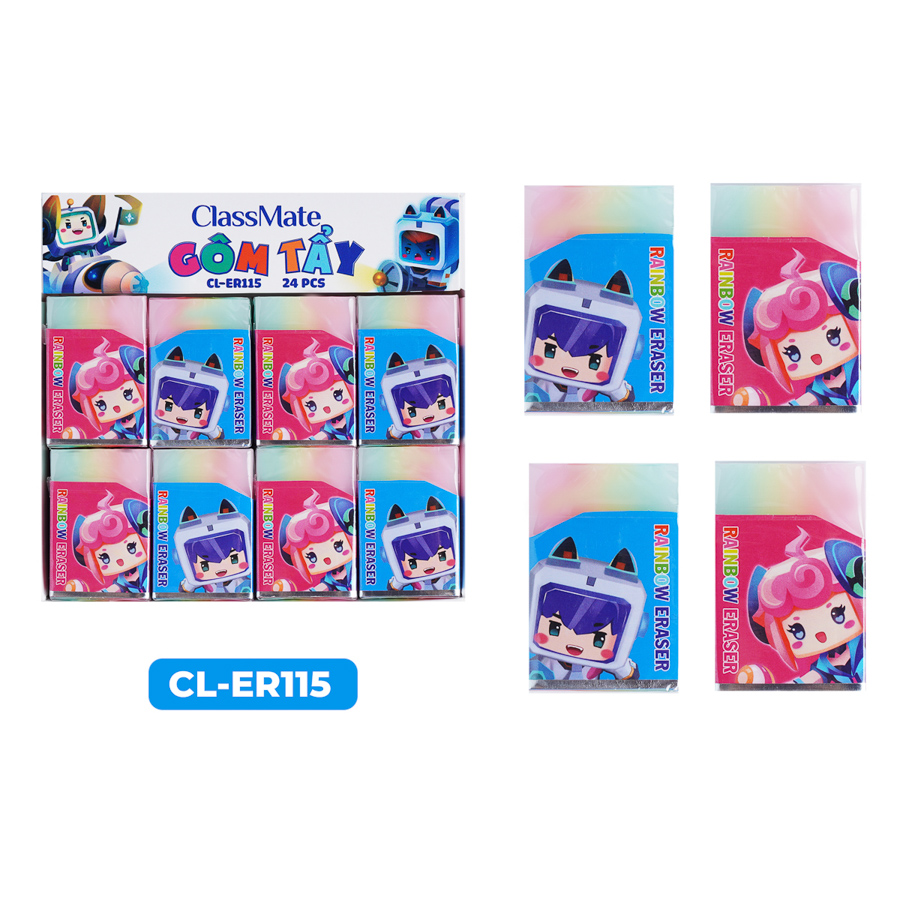 - Tẩy CLASSMATE với độ bền dẻo cao có khả năng tẩy sạch các vết chì đen mà không gây rách giấy, không làm bẩn, lem trên giấy trắng.