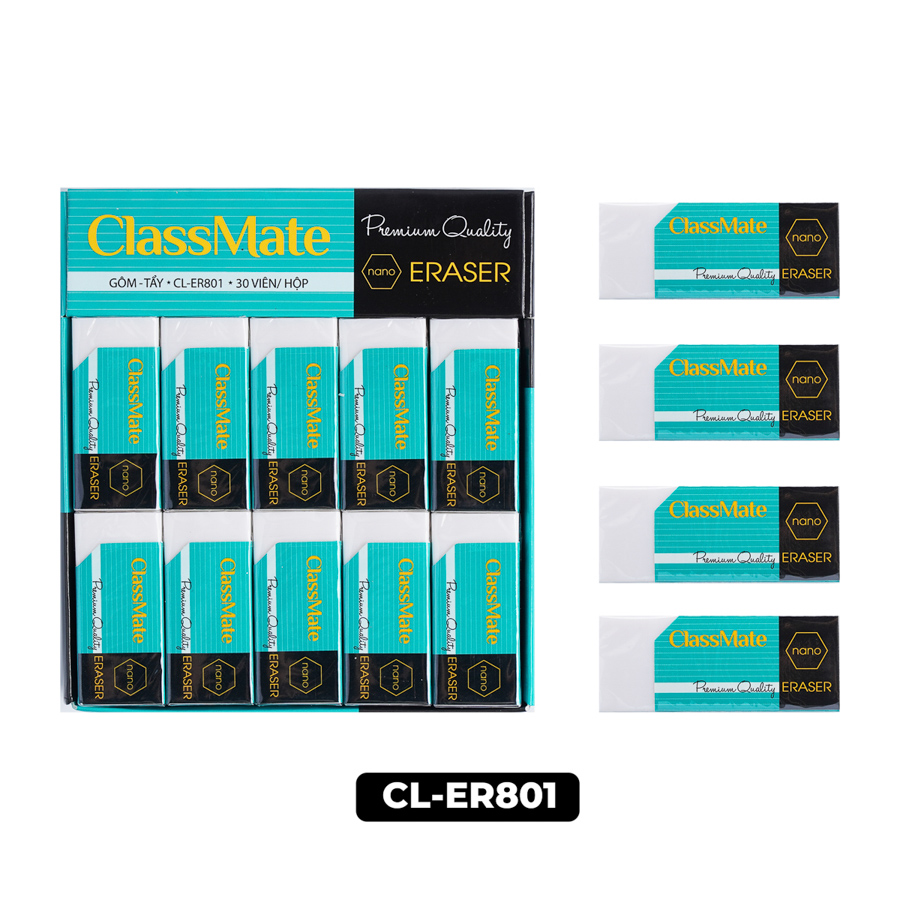 - Tẩy CLASSMATE với độ bền dẻo cao có khả năng tẩy sạch các vết chì đen mà không gây rách giấy, không làm bẩn, lem trên giấy trắng.