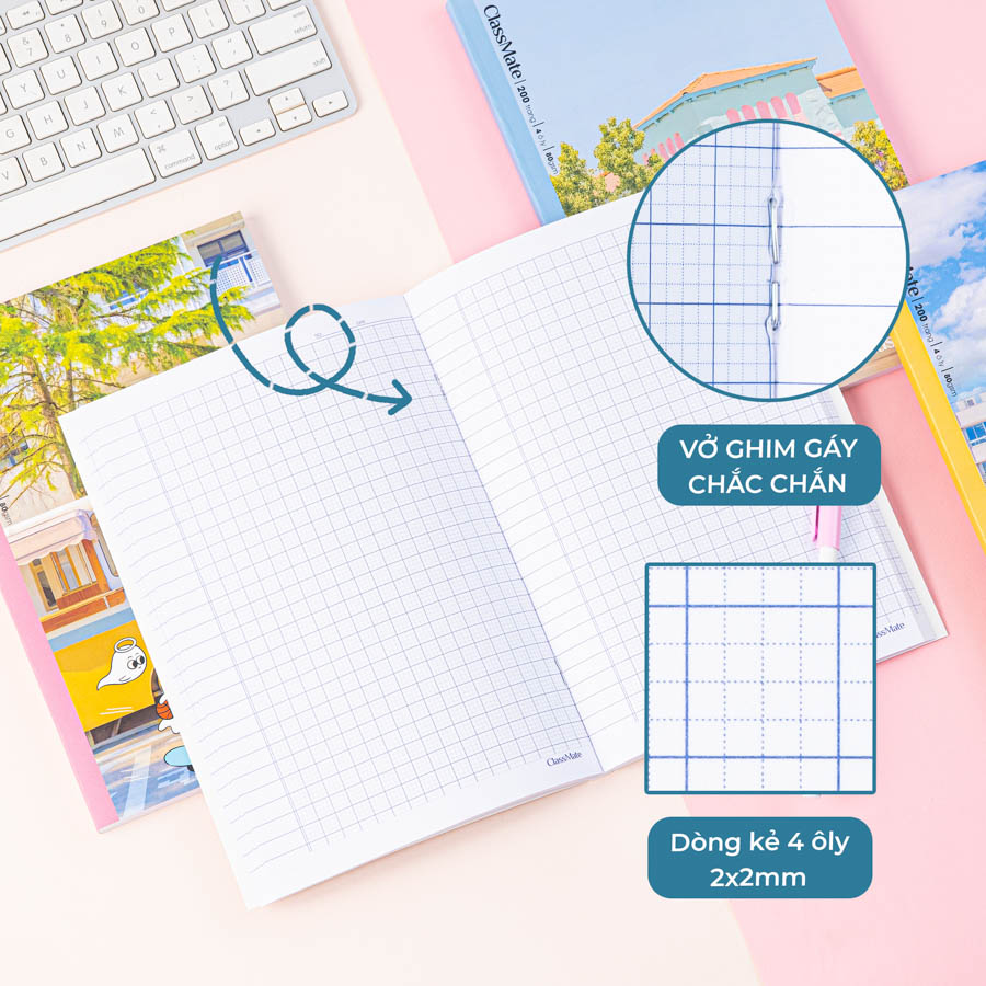 Vở 4 ô ly vuông nhỏ 2x2mm miền nam, định lượng 80gsm, 200 trang