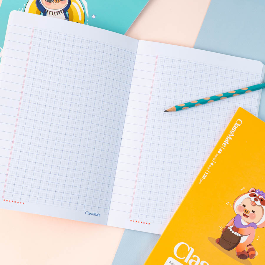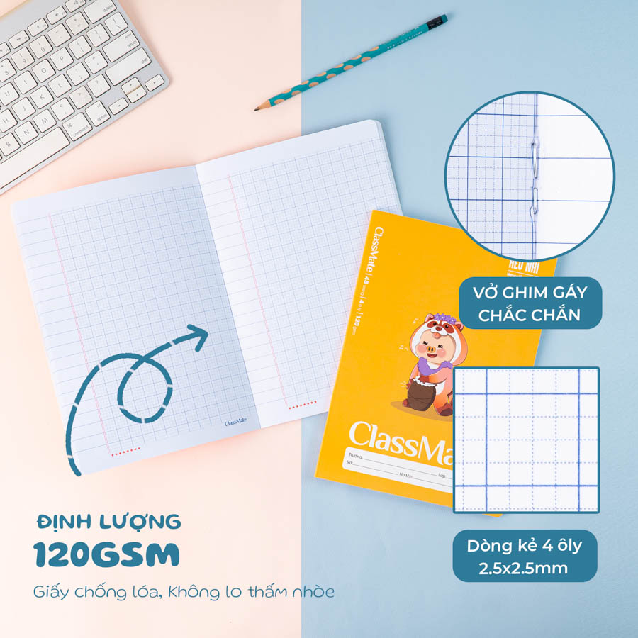 - Hình ảnh in sắc nét, đường kẻ ô ly rõ ràng. Vở học sinh Classmate được thiết kế với gam màu pastel dịu mát, giúp kích thích thị giác và trí não của trẻ khi học tập.